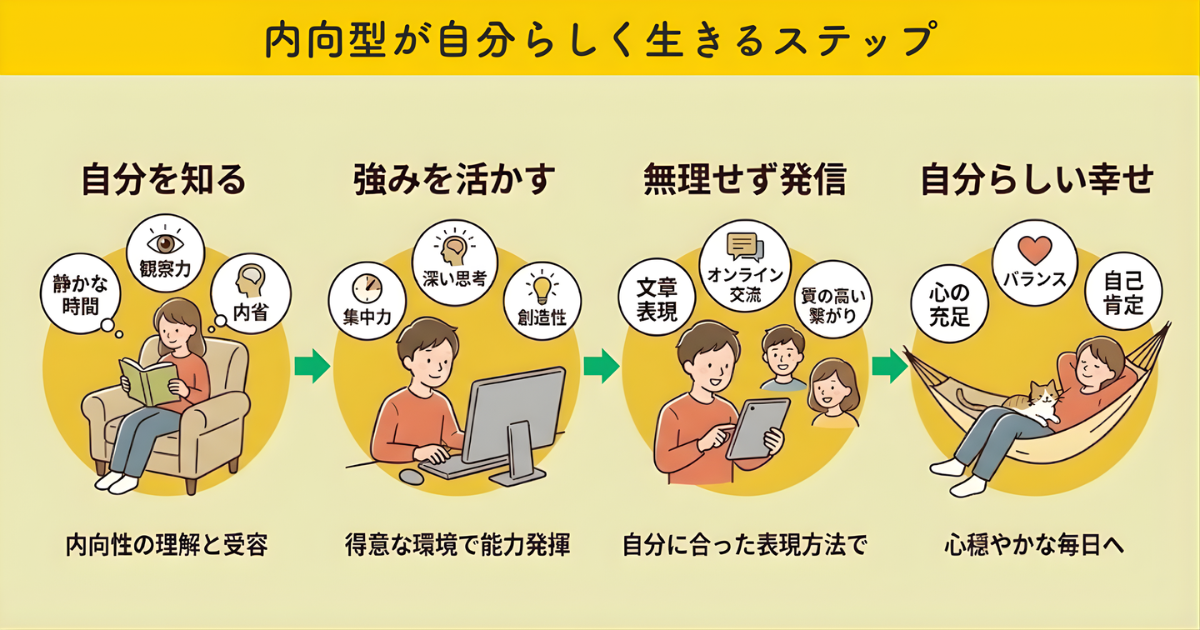 そして内向型がありのままの性格で、この社会で生き生きと暮らせる働き方を提案し解説しています。